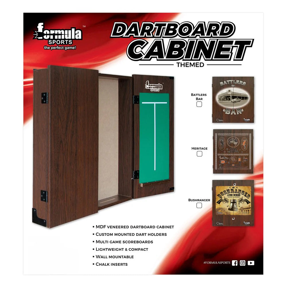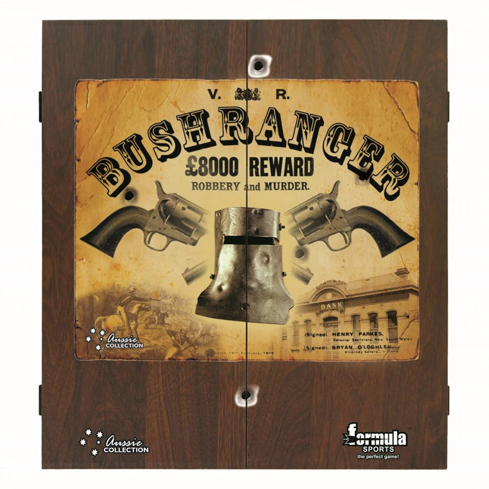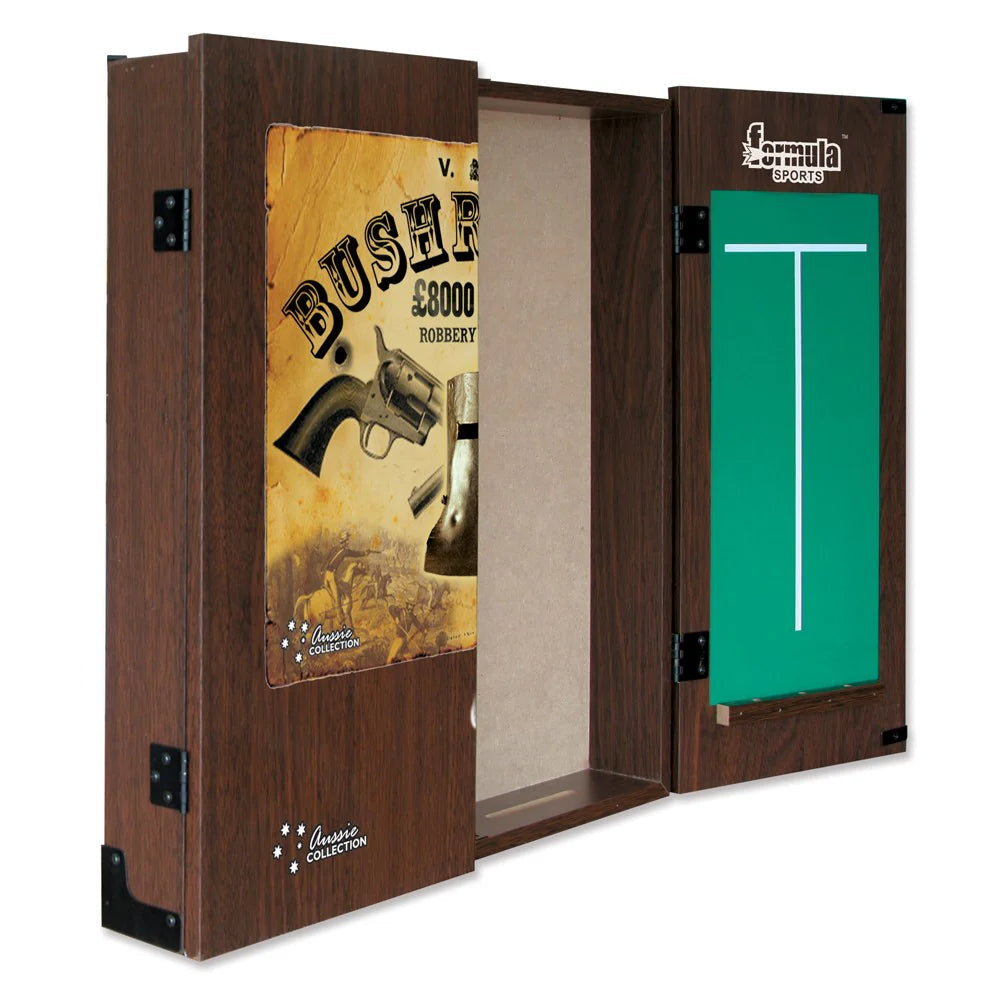 The Bushranger Cabinet is from the Formula Sports Aussie Collection. The unique Bushranger design has been applied to a Walnut MDF dartboard cabinet.