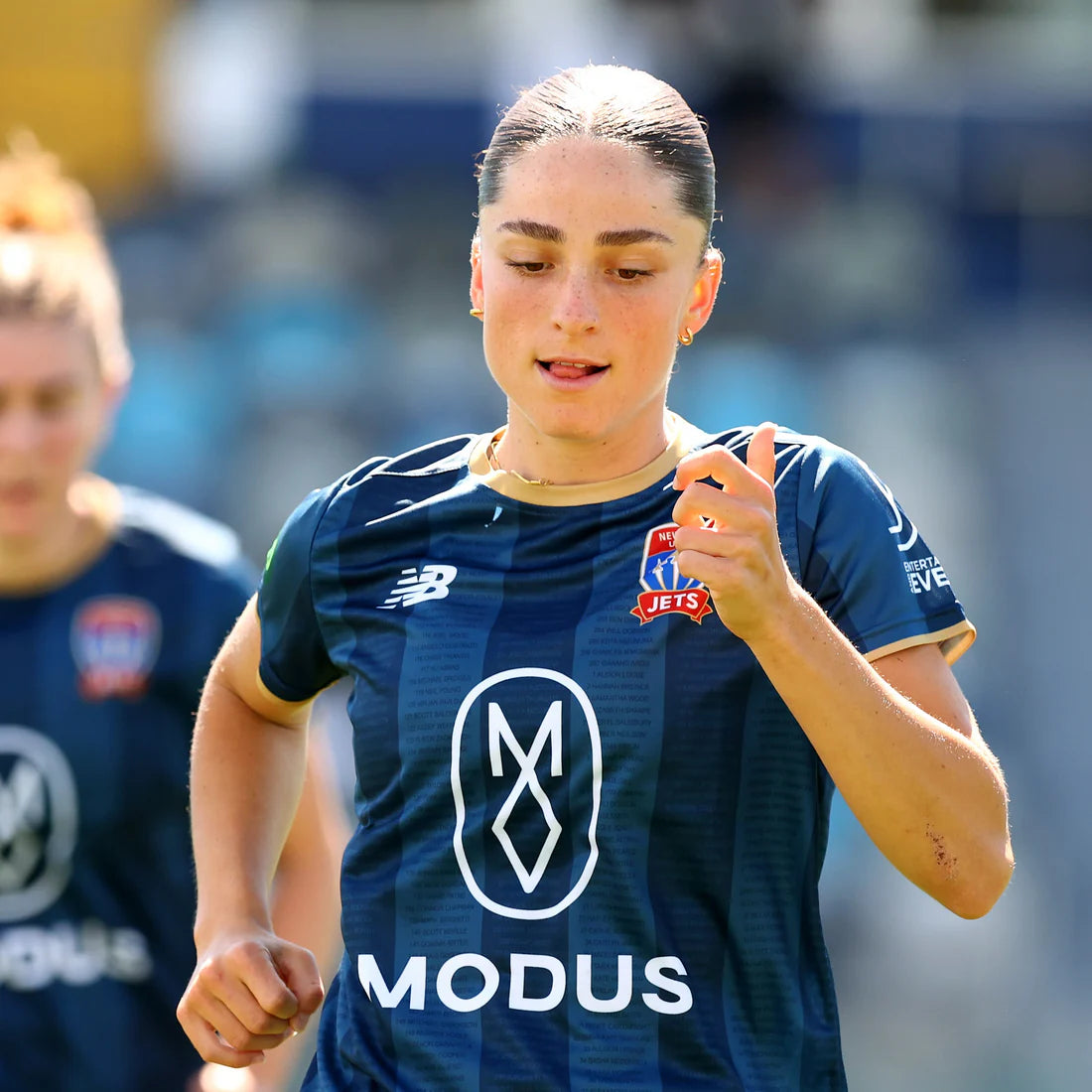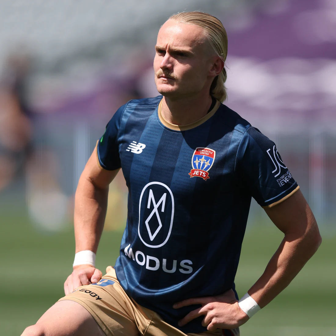 Warm up looking like the Newcastle Jets in the official Jets warm up tee.